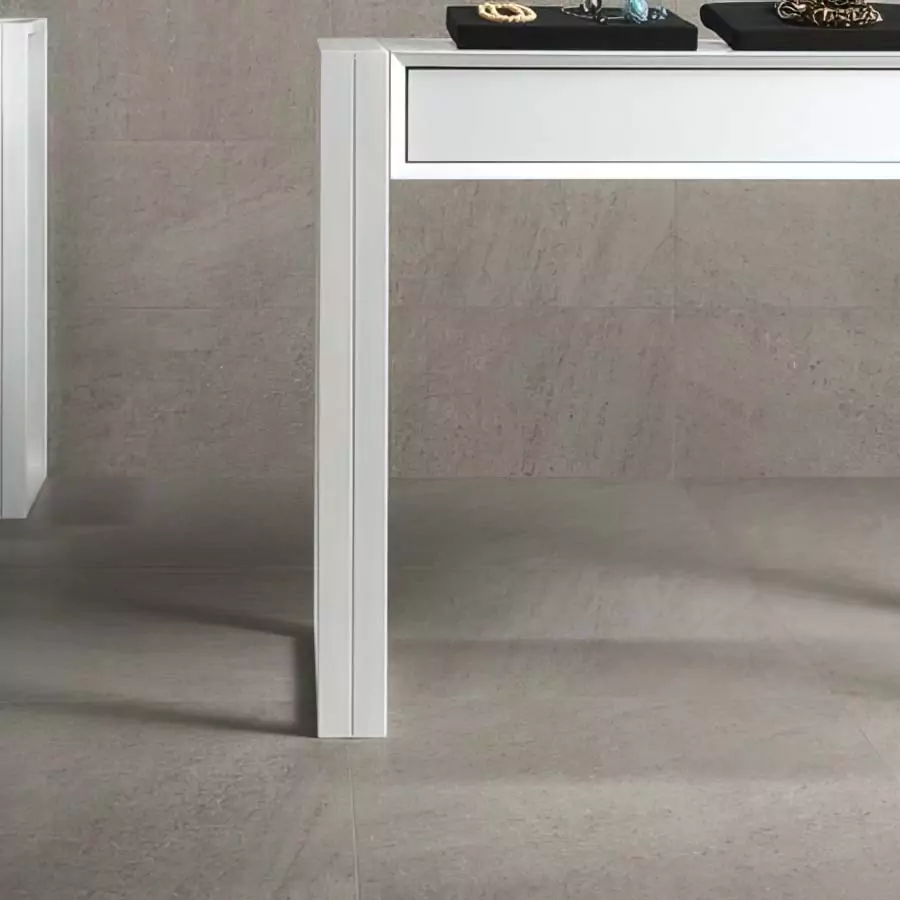 Many of our 20mm exterior paving tiles from the Levato Mono range have a complementary 10mm interior tile range. Branded ‘Levato’, these interior tiles are direct replica’s, which allows a person to create a seamless visual transition from outside spaces through to the inside with matching tiles.