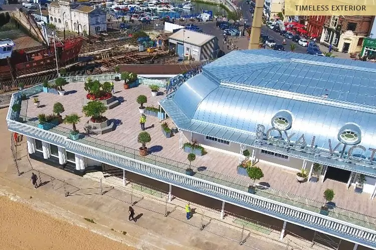 The Surface 360 deck-style porcelain pavers have transformed JD Wetherspoon’s wraparound terrace at the Royal Victoria Pavilion on Ramsgate beach.